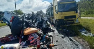 De acordo com a Polícia Rodoviária Federal (PRF), a colisão resultou na morte do carona da caminhonete. O corpo dele ficou preso às ferragens e precisou ser retirado com o apoio do Corpo de Bombeiros. A Polícia Civil identificou a vítima fatal como Antonio Caetano Santos da Silva, de 51 anos.
