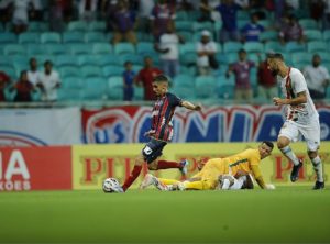 O triunfo tricolor foi construído ainda no primeiro tempo. Daniel, aos 45 minutos, marcou o gol que colocou o time baiano em vantagem nesta terça-feira (26).