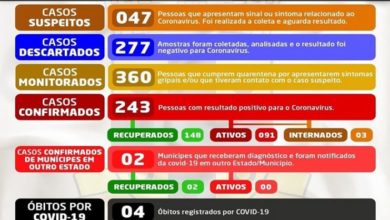 NFORME EPIDEMIOLÓGICO CORONAVÍRUS – 14/07 Casos Confirmados – 50 (Pessoas com resultado positivo para coronavírus) Ativos: 22 Recuperados: 28 Óbitos:…