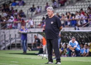 Geninho não comanda mais o Vitória. O técnico foi demitido na noite desta quarta-feira (20) após a derrota por 3×0 para o Fortaleza. O jogo, disputado na capital cearense, foi o primeiro do duelo nordestino válido pela terceira fase da Copa do Brasil. A decisão da diretoria rubro-negra pela mudança foi tomada ainda no vestiário do estádio Castelão. Auxiliar técnico fixo do clube, Ricardo Silva também foi desligado, bem como o preparador físico Carlito Macedo.