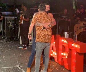 Gusttavo Lima surpreendeu o cantor Kart Love após “invadir” o show da madrugada deste domingo (17) em Serrinha, no interior da Bahia.