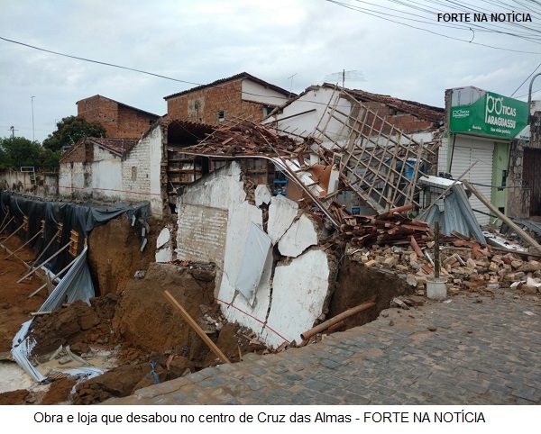 Parte de uma loja de produtos naturais localizada na rua JB da Fonseca, região central de Cruz das Almas, desabou durante a madrugada deste domingo (10). Segundo uma funcionária do Mundo Nattural, chovia bastante quando aconteceu o incidente, por volta das 3h10. De acordo com as primeiras informações, o desabamento pode ter sido causado por uma obra ao lado depois que um deslocamento de terra arrastou a parede lateral do estabelecimento. Segundo os bombeiros civis, há risco de novos desabamentos no local, onde provavelmente será construído um estacionamento subterrâneo. “Por esse motivo, tivemos que isolar a área a fim de evitar acidentes”, disse a bombeiro civil, Edigarci. Agentes da SMTT estão no local orientando os motoristas.(Forte na Notícia)