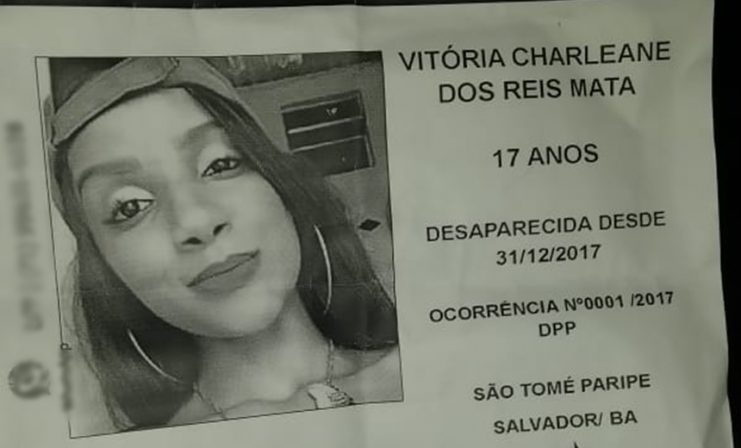 Moradora de Águas Claras, na capital baiana, Vitória foi vista pela última vez no dia 31 de dezembro de 2017, na festa de ano novo de São Tomé do Paripe, no subúrbio ferroviário de Salvador. Segundo a família, a jovem estava no evento com uma prima e uma amiga, mas se desentendeu com uma das meninas e foi embora, mas não voltou para casa.(Forte na Notícia)