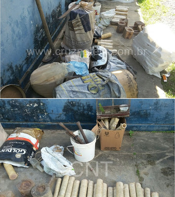 Ao se aprofundarem na ocorrência, com o apoio do Pelotão de Emprego Tático Operacional (PETO), eles descobriram uma casa, onde estavam abrigadas várias espadas de fogo e materiais para o seu fabrico, prática inclusive proibida pela justiça. Foram apreendidas, 72 espadas prontas, seis macetes, quatro socadores, dois tuneis contendo pólvora, peneira, barro, umpássaro silvestre e um aparelho toca CD.