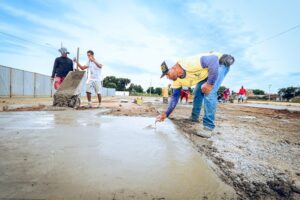 A equipe da Secretaria de Infraestrutura e Obras Públicas (Seinfra), está fazendo um piso reforçado com drenagem no local.