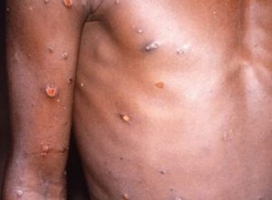 A Monkeypox se assemelha à varíola humana, que foi erradicada em 1980. Os principais sintomas da doença são febre, dores de cabeça, musculares e nas costas, adenomegalia, calafrios e exaustão. A infecção é autolimitada com sintomas que duram de 2 a 4 semanas, geralmente dividida em dois períodos:
