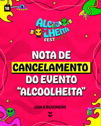 Segundo os organizadores da festa, intitulada Alcoolheita, o evento estava programado para acontecer neste sábado, dia 11. Em nota divulgada nas redes sociais, a organização informou que a Alcoolheita teve que ser cancelada. Eles alegam que: “essa decisão foi tomada em face da atual crise de saúde pública relacionada a casos de intoxicação por metanol em bebidas alcoólicas adulteradas que assolam o país, com dezenas de notificações confirmadas ou em investigação.”
