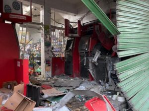 “Eles começaram a arrombar a porta, eu olhei lá de cima e tinha um carro atravessado na rua, com uma metralhadora na frente, dois carros fechando a rua e eu só via as explosões”, disse Roberto, dono da farmácia. “Foram três explosões, não conseguiram levar nada e destruíram a farmácia toda”. Equipes da Polícia Militar fazem rondas na região a procura dos suspeitos.